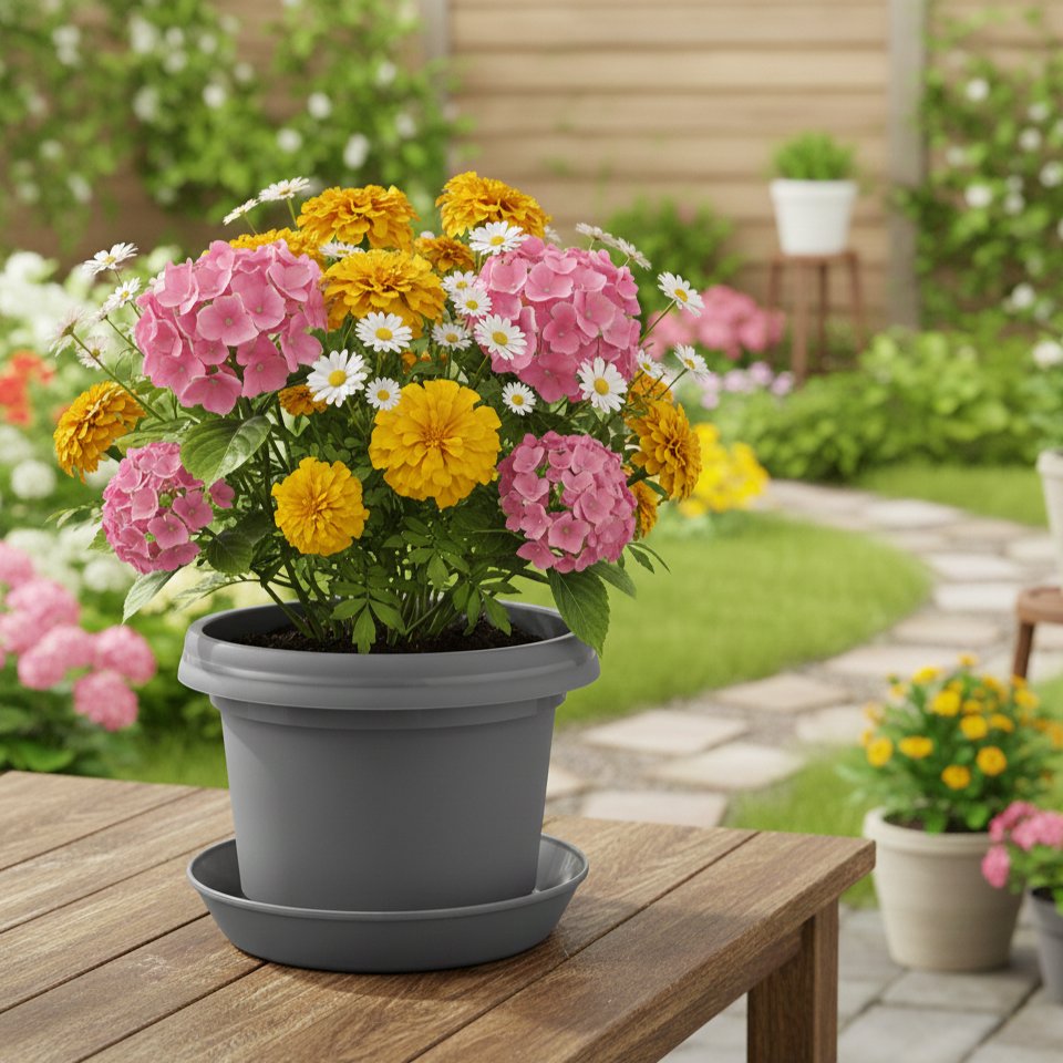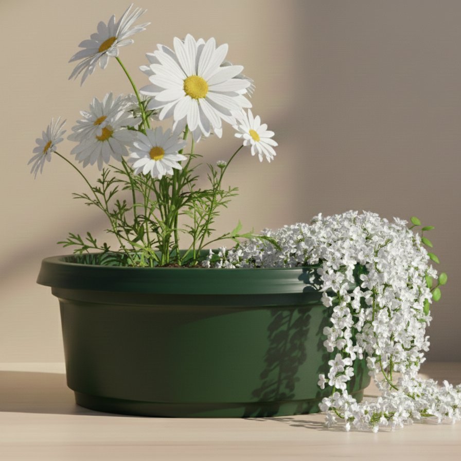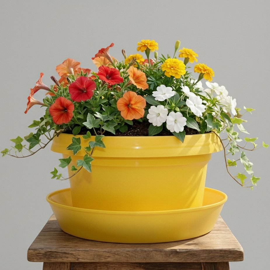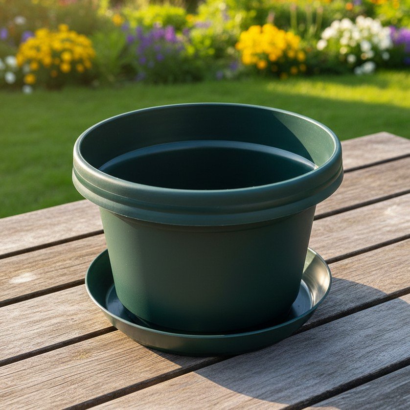 The Classic design of these planters and saucers make it a great element for decorative purposes. The color is molded throughout the resin and matches many different decors. Delivered with drainage holes. Lightweight and durable resin construction - weather resistant Made with high impact polypropylene. Can be used indoor or outdoor. The Classic design of this saucer makes it a great element for decorative purposes and works with many different colored pots. The color is molded throughout the resin and matches many different decors. Lightweight and durable resin construction - weather resistant Made with over 90% recycled plastic Can be used indoor or outdoor. The Austin Planter saucer collects excess water drainage and soil spillage from your ceramic or resin pots. The inner surface is flat for the pot or planter to rest evenly. The underside is ribbed to keep the saucer slightly above the flooring surface. Each saucer has a support grid to allow airflow so the floor contact area does not trap moisture under the saucer. Seedling container, seed starter pot, nursery pot & saucer Plastic, durable, colorful flower pot and saucer Planters and saucers, good for DIY projects and crafts Indoor or outdoor, home, yard, patio, terrace, lawn, crafts100% USA made in the USA Made with over 90% recycled plastic Can be used indoor or outdoor. Lightweight and durable resin construction - weather resistant Made with high impact polypropylene