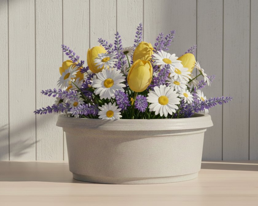 13 inch by 5 inch Granite colored Pot with Saucer (14 inch)- ( Single ) - Made of colored Polypropylene - Made is USA