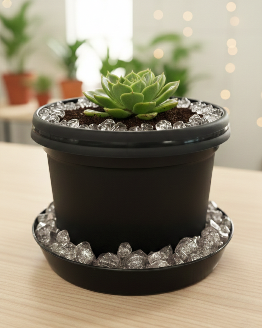 PERFECT FOR POTS & SAUCERS: These plastic decorative pebbles are ideal for covering soil in plant pots, saucers, succulent arrangements, bonsai, and cactus displays, giving your plants a clean, finished look. Can be used around pots in saucers to hide the water.