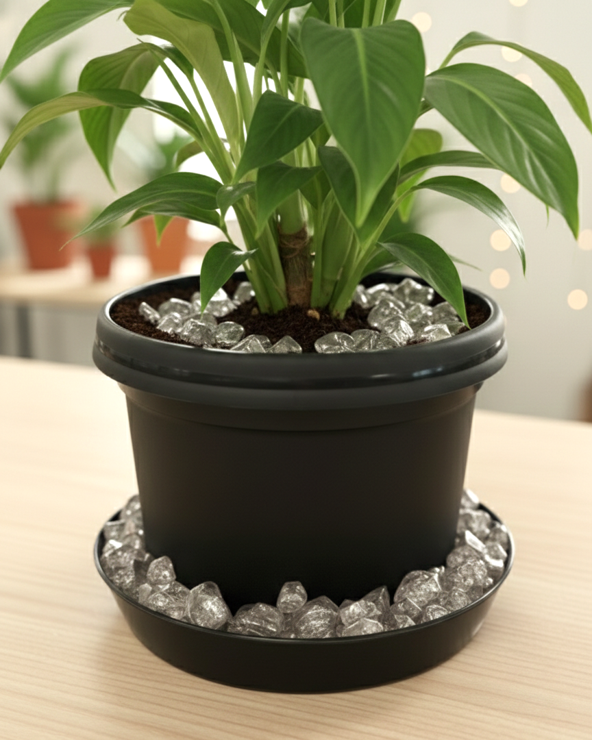 HELPS RETAIN MOISTURE & REDUCE MESS: A top layer of pebbles helps reduce soil splash when watering, limits evaporation, and keeps lightweight potting mix in place – great for indoor plants and clean windowsills.