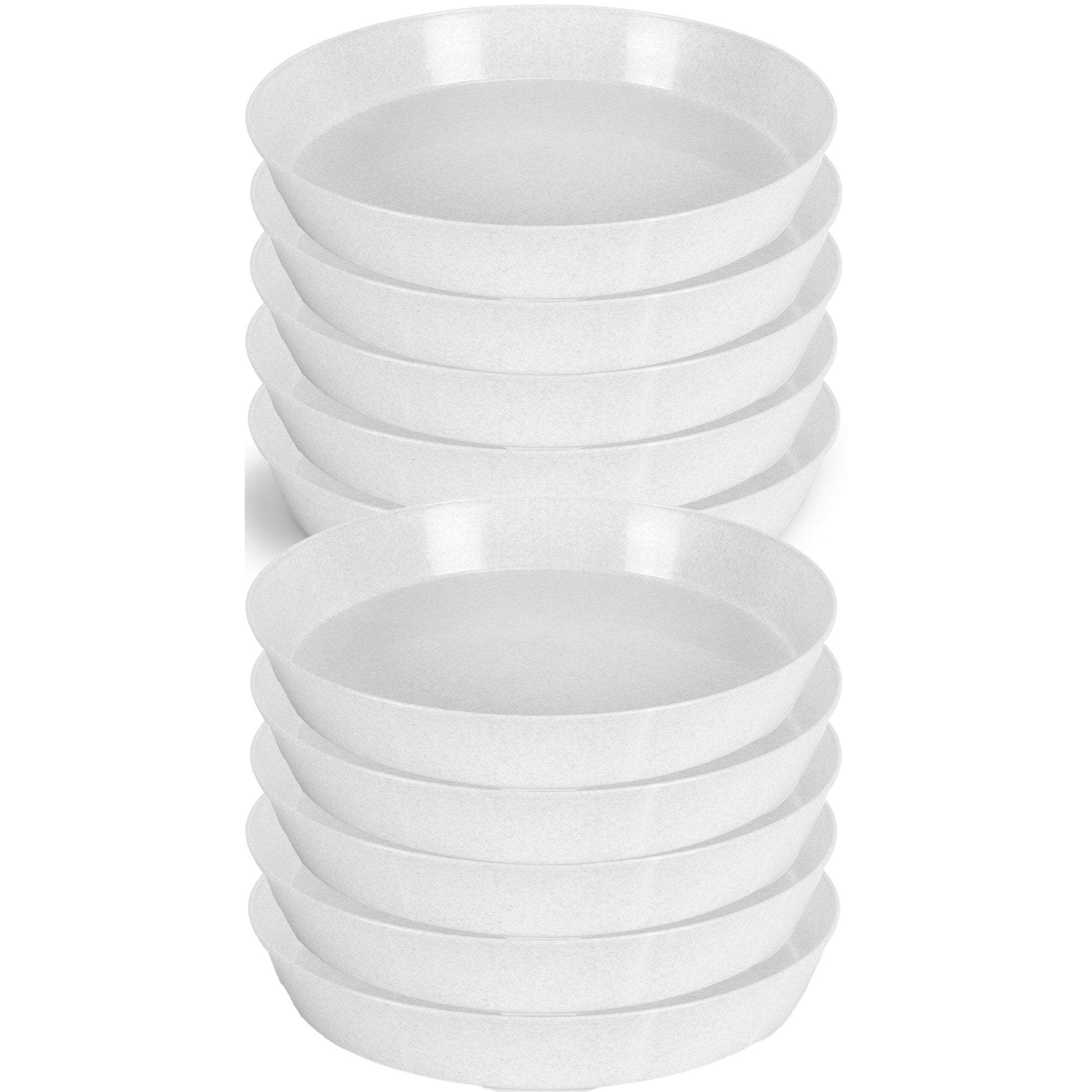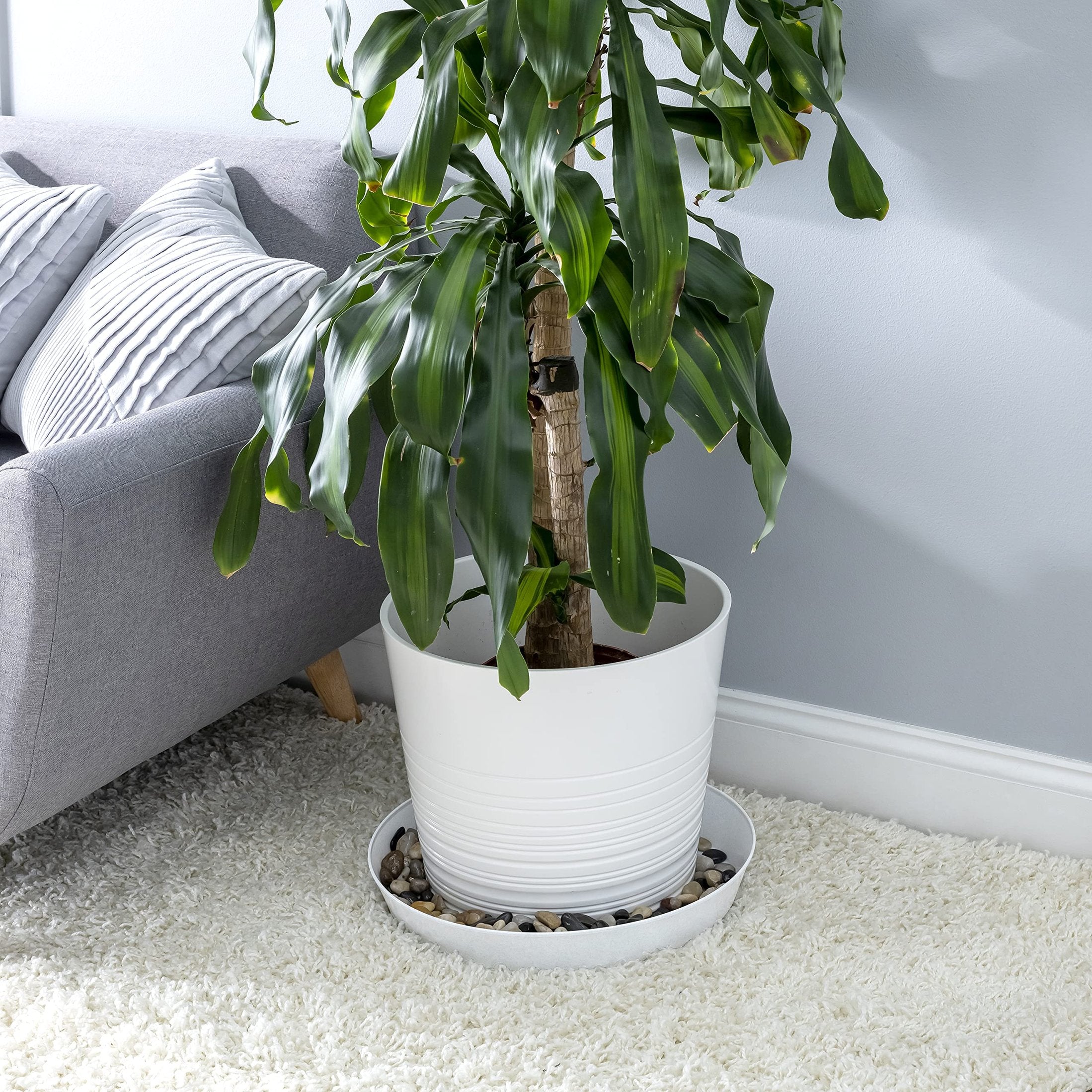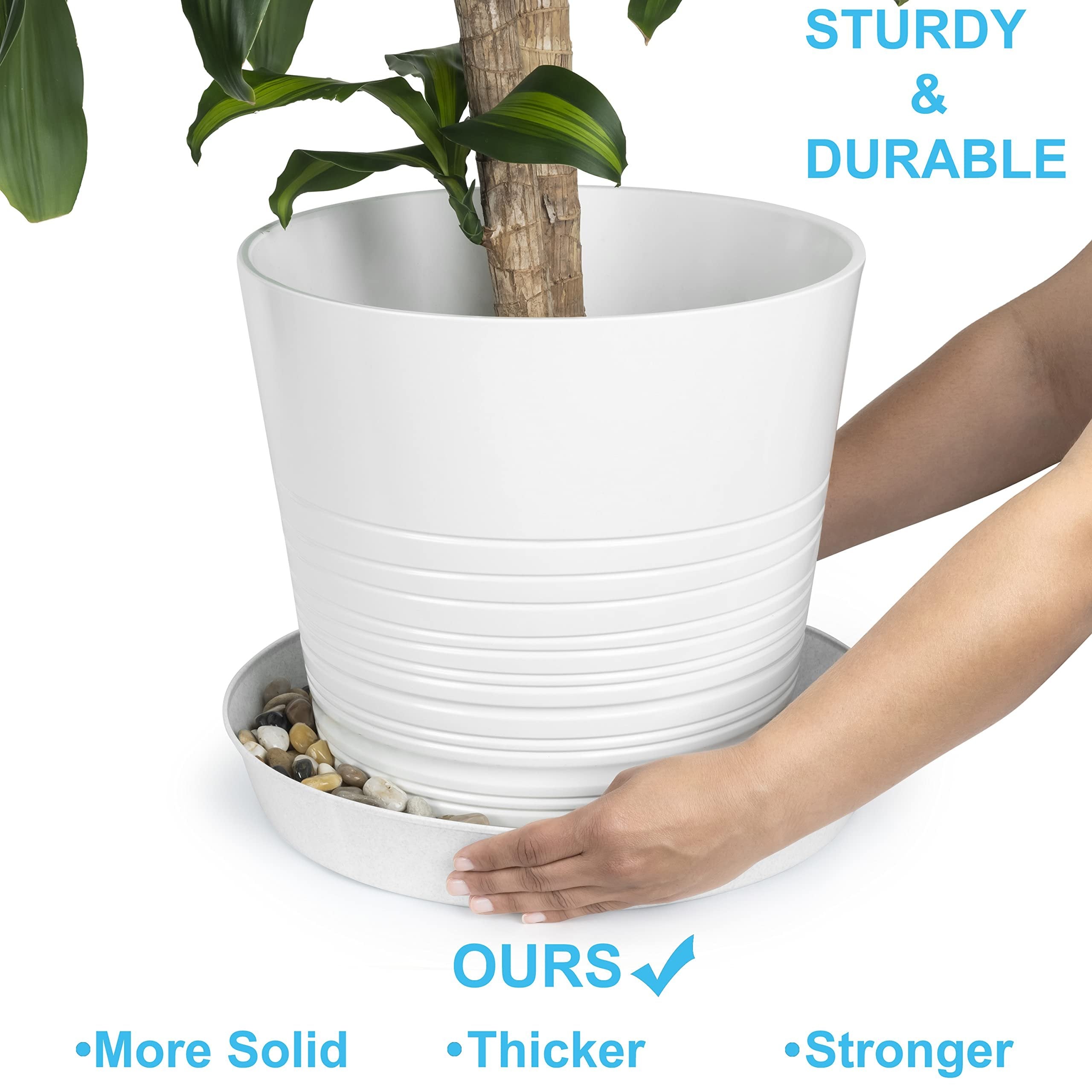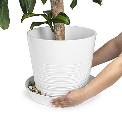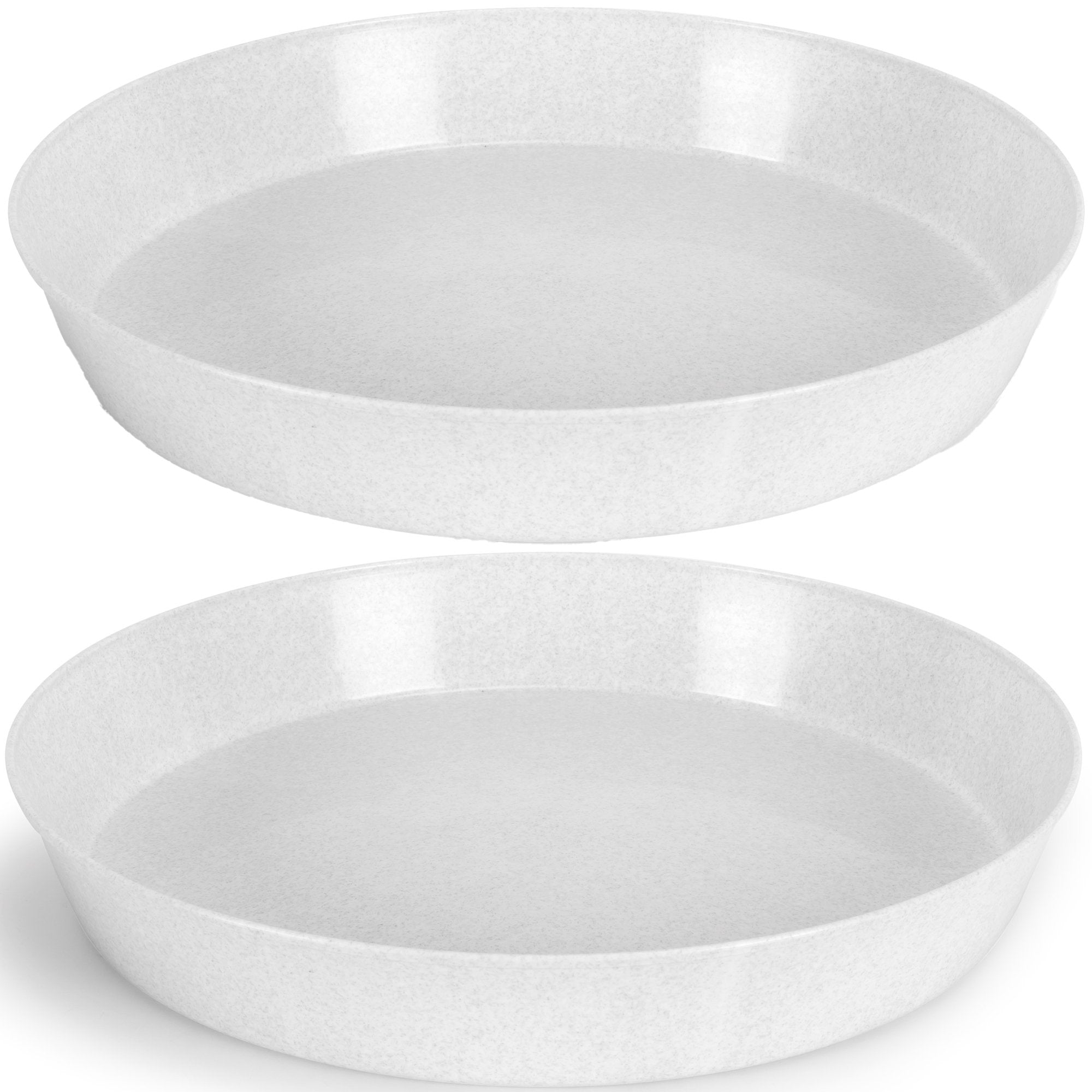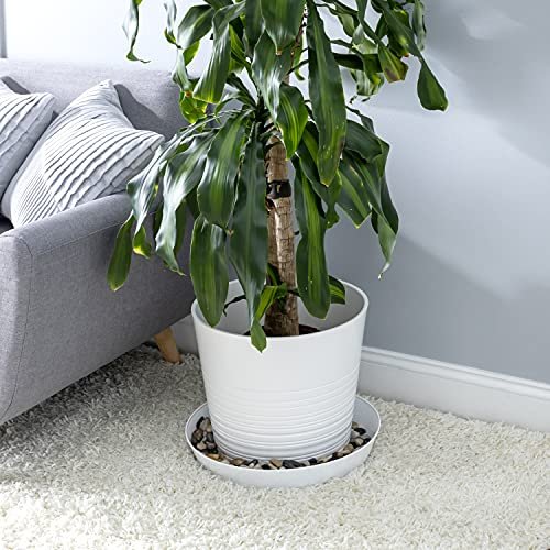 Austin Planters Polypropylene Plant Saucers Multi Pack – Heavy Duty Indoor/Outdoor Tray and Drip Pan – Collects Flower Pot Drainage and Excess Water– Made in USABUY DIRECT FROM THE MANUFACTURER· - HEAVY DUTY PROTECTION – Keep your hardwood floors, carpet, decks and furniture safe from water stains and rings with these thicker and sturdier plant saucers - COLORS AND USES – Granite color which is a gray and white combination with dark mineral grains visible - our saucers work great as flower or plant trays, drip pans, or drainage saucers - DECORATIVE DESIGN – Our saucers are all designed with the home and yard in mind – find the color and finish that best suits your home décor - MADE IN USA – All of our plant trays/saucers are made in the USA using 95% recycled high impact polypropylene which is a strong plastic that is easy to clean - SIZE – Note that a 12 inch saucer is sized for a flower pot that is 12 inches at the top and tapers to the bottom. Make sure you look at the table of sizes to make sure you have the right size. Add about 2 inches to the diameter of the base of your pot to allow for adequate water storage. You can always use a bigger saucer and fill the gap with decorative rocks. Description The Austin Saucer collects excess water drainage and soil spillage from your flower pots. The classic design of these planters and saucers make it a great element for decorative purposes. Protect your hardwood floors, carpets, decks, and furniture from those harmful water stains and rings plants often leave with our sturdy, reusable plant saucers. Thicker and sturdier than most other plastic plant saucers. Our plant saucers are specially made in the USA using 95% recycled high impact polypropylene which is a strong plastic that is easy to clean. The trays are heavy duty enough to hold large and heavy pots but light enough that they’re easy to handle and move. The underside is ribbed to keep saucer slightly above the floor surface to protect your household surfaces. The round shape and flat inner surface allows the pot or planter to rest evenly on nearly all surfaces. It’s the perfect plant drip pan for inside, outside, patio, terrace, yard or household locations. Features and Specifications This package includes 5 plastic plant saucers. The color is molded throughout the resin and matches many different decors. Each flower pot saucer measurements are on the chart provided in the pictures. Carefully read the size on the picture to ensure that our pot trays meet your needs. Note measurements on top of saucers are bigger than bottom measurements. Weight Outside Dia. Inside Dia. Height grams inch inch inch3 inch Austin Saucer 3 3.25 2.5 0.754 inch Austin Saucer 12 4.1 3.0 0.95 inch Austin Saucer 14 4.9 3.9 0.756 inch Austin Saucer 21 6.0 4.5 1.257 inch Austin Saucer 38 7.0 5.5 1.258 inch Austin Saucer 60 8.0 6.3 1.4510 inch Austin Saucer 111 10.0 8.3 1.812 inch Austin Saucer 127 12.0 10.1 2.014 inch Austin Saucer 250 14.0 12.14 2.216 inch Austin Saucer 374 16.0 14.25 2.418 inch Austin Saucer 610 18.0 16.3 2.621 inch Austin Saucer 808 21.0 19.0 3.0Bullet 1AUSTIN PLANTER saucers are high quality manufacturedplant pots saucers which are environmentally friendly, recyclable and a must toprotect furniture and floors from becoming stained from soil spills and overwatering. Perfect for indoor andoutdoor use. The AUSTIN PLANTER saucer will not fade and can be washed andreused over and over. They are dishwasher safe too. Bullet2Neverworry about excess water or soil overflow that contaminates your floor orfurniture! Our AUSTIN PLANTER saucer is perfect for placing underneath indoorplanters and it will catch excess drainage water and protect your householdsurfaces from water damage. Great for indoor use when a plant needs to be movedfor any reasons such as insufficient sunlight.Bullet3TheAUSTIN PLANTER saucer allows your planters to drain out excess water to preventoverwatering. Water drains freely, and provides critical airflow for healthyroot aeration, helping your precious plants grow stronger.The AUSTIN PLANTER saucer’s durable plasticconstruction provides stability for planters and allows plants to be movedeasily. And you could use the extra spaces to display stones or marbles to addbeauty to your plants. Perfect for indoor and outdoor use.Bullet 4In order to choose the correct sized saucer, please measure the diameter of thebottom of the pot, and then choose a pot with a diameter larger than themeasured size. The best way to find the correct saucer is to turn the flowerpot overand measure the bottom diameter. Select a saucer with base diameter about 2inches larger - Austin Planter saucers are flat on the inside so you can useany size pot that fits the saucer and even several small pots in one saucer.Carefully Read the Size Information BeforeMaking a Decision. Note that the top and bottom dimensions of the flower potsaucer are different.Bullet5Ourplastic trays are specially made of premium new PP Plastic material, solid,durable, sunlight-resistant and fall-resistant, thicker and stronger thanothers, Thisplanter tray made of lightweight and heavy-duty PP material, highquality and low price, suitable for various indoor and outdoor uses.Bullet 6Why is pp (polypropylene) better thanPVC (vinyl)? Polypropylene is one of the most neutral plastics, containingonly two elements in its basic structure: carbon (C) and hydrogen (H).PVC by comparison contains Chlorine (Cl) in its basic structure. When PVC isincinerated or present in accidental fires it can produce toxic byproducts suchas dioxins, chlorocarbons and hydrochloric acid. Complete combustion of PP, onthe other hand, will generate only carbon dioxide and water. PP is much more tolerant to heat; even underextreme conditions it will only decompose to lower molecular weight paraffins,which are elementally compatible with the base material.Bullet 7Help keep plants moist longer and maintain a cleaner garden, ensuring your favorite 
