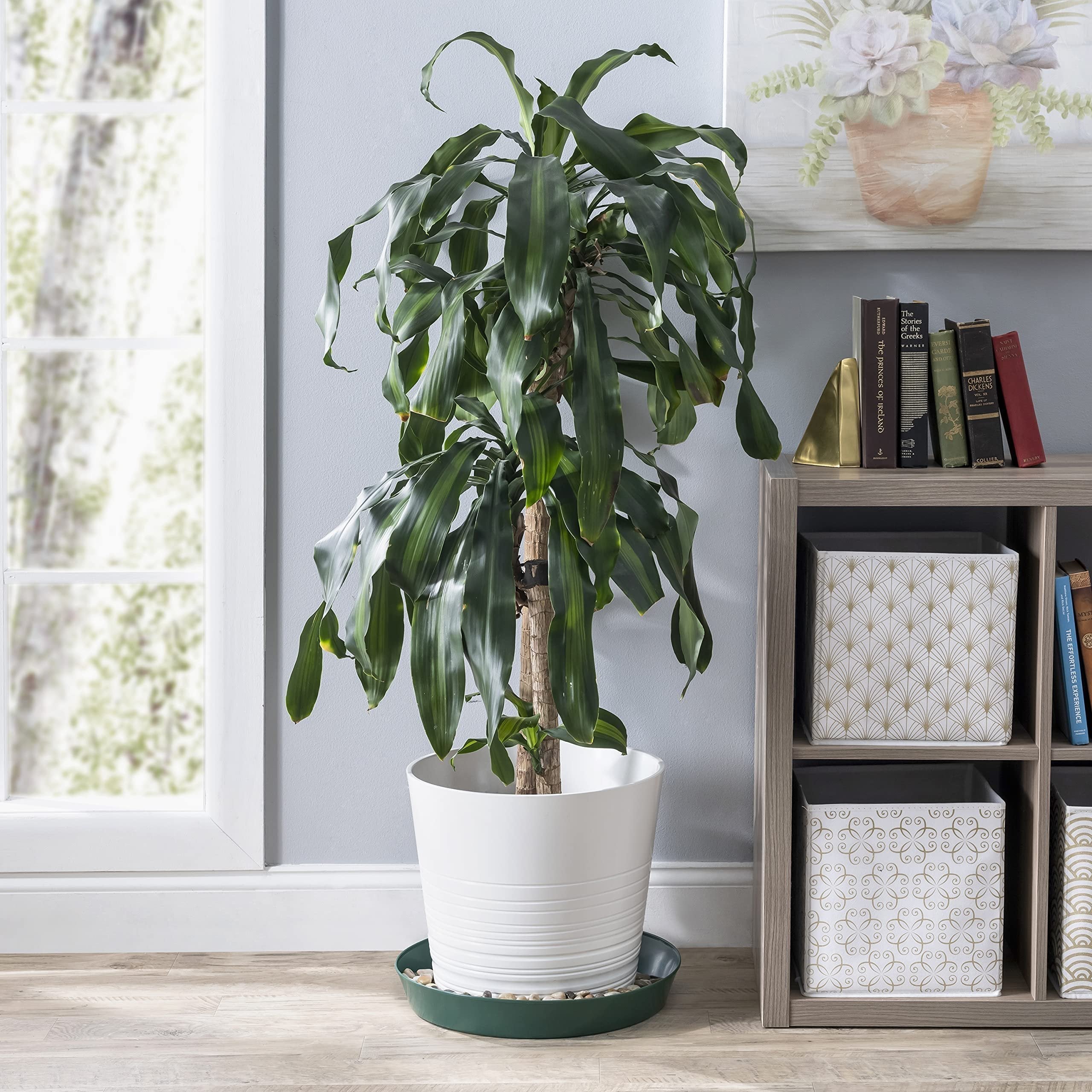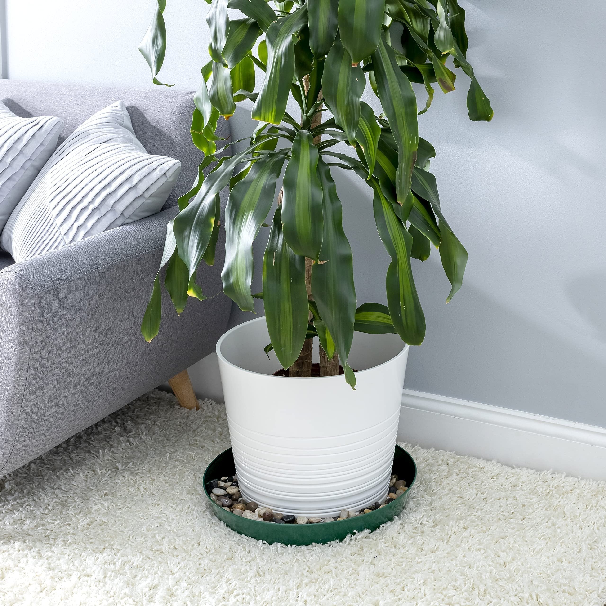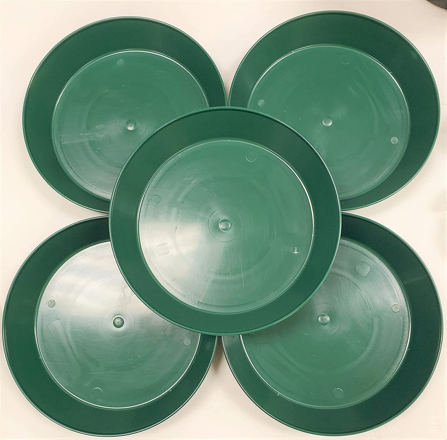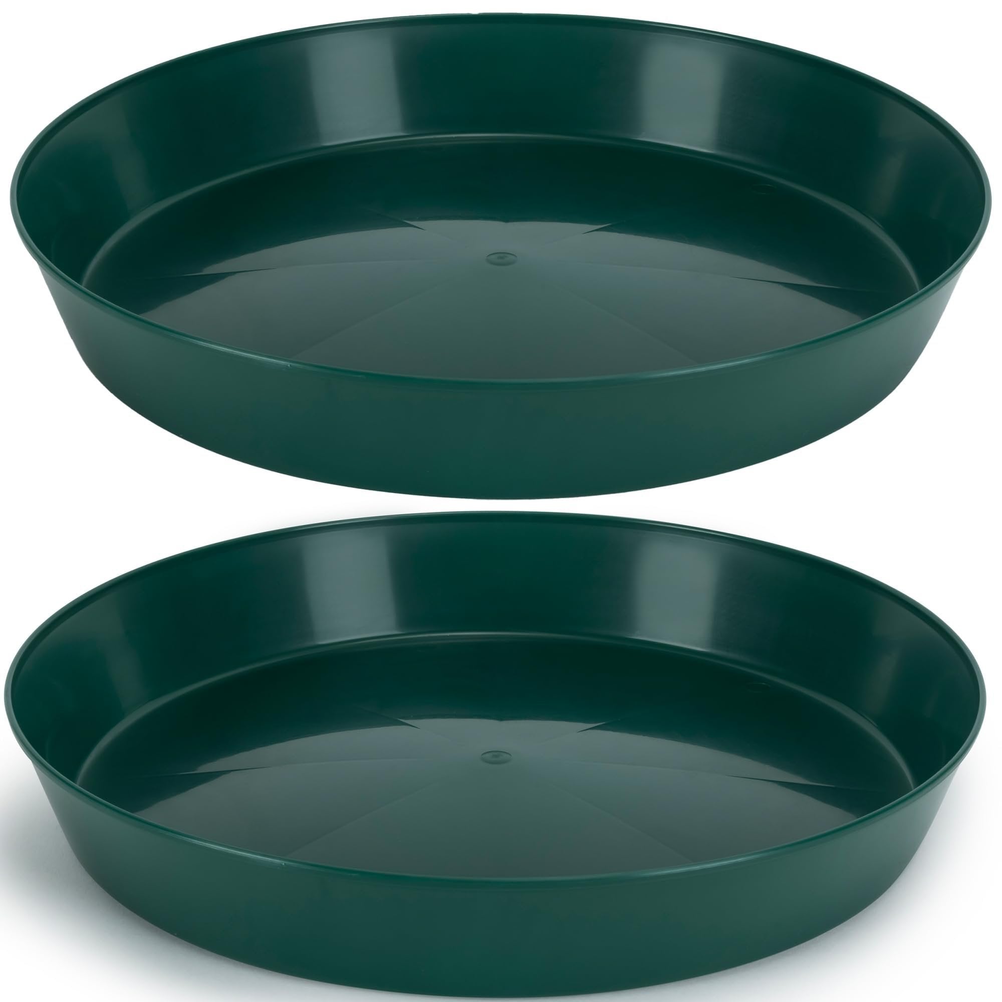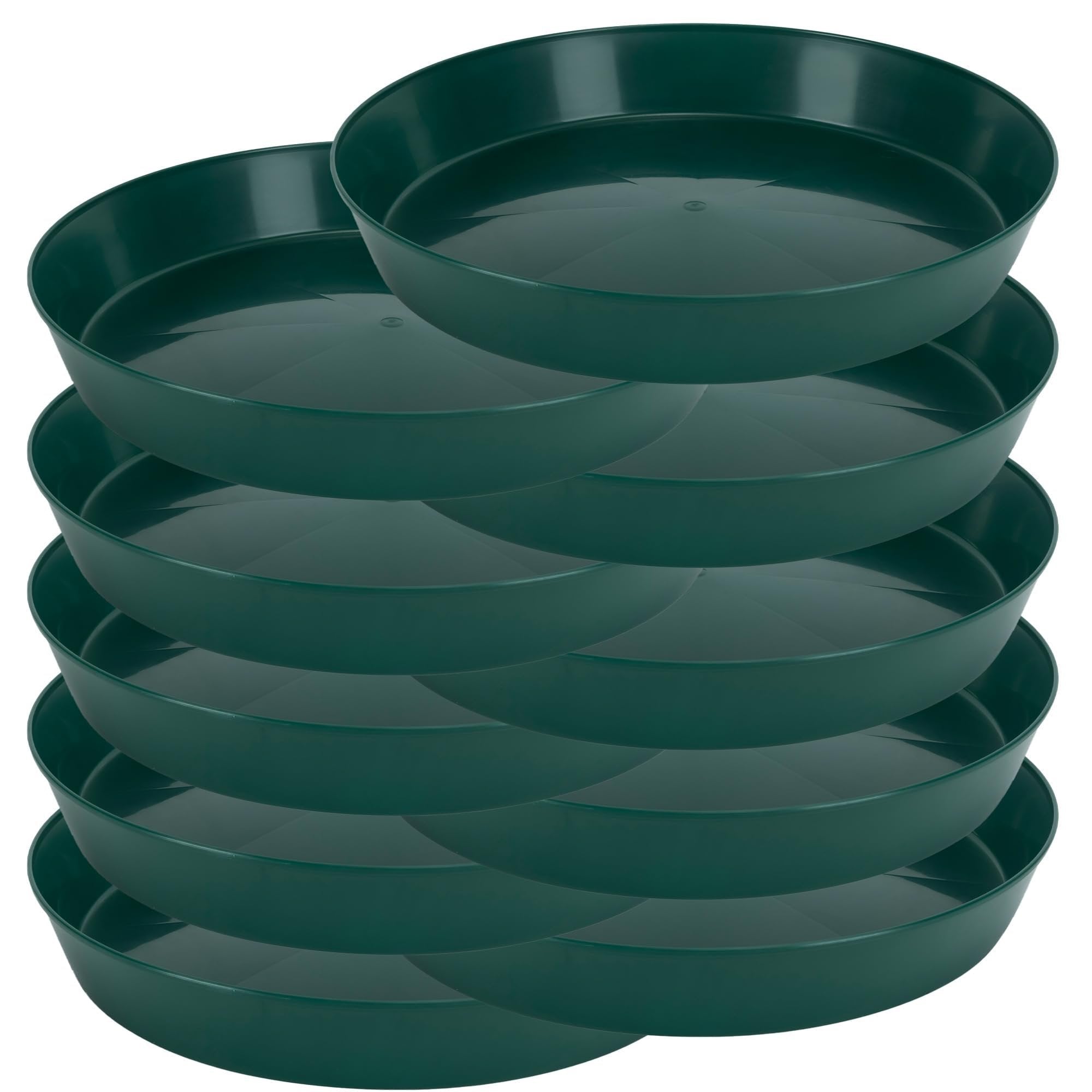 The Austin Planter Saucer, a versatile and durable plant drip pan designed to collect excess water drainage and soil spillage from flower pots. The saucers are made in the USA. Using 95% recycled high impact polypropylene, an Eco-friendly, long-lasting, color retaining plastic. They are designed to protect any surface, hardwood floors, carpets, decks, and furniture providing protection against water stains and rings. Their underside is ribbed to keep the saucer slightly raised above the floor. The round shape and flat inner surface allow the pot or planter to rest evenly on nearly all surfaces. They are weather-resistant, dishwasher safe making it possible to reuse the saucers over and over. The large sides also allow plants to drain out excess water, provide airflow for healthy root aeration, and add beauty to plants. Overall, these plant saucers are a great addition to any indoor or outdoor home décor, they can be used for decorative purposes using colorful pebbles, stones or marbles, adding beauty to plants. They are suitable for various uses including flower pots, drip pans, and drainage saucers. They are great for serving trays, under a propane tank by the grill, under the Christmas tree or a water dish for your pets. Austin Planter Saucers also make a great tray for your remotes, serving food or even a paper plate holder. The saucers come in many sizes, 3-4-5-6-7-8-10-12-14-16-18-21 inches, making it easy to find a saucer that is the correct size for your pot or several small pots in one of the larger Austin Planter saucers. They are lightweight and heavy-duty, making them easy to handle and move. Our various color choices make it easy to matches any pot color; ceramic, clay, and plastic. To choose the correct size, measure the bottom diameter of the pot and select a saucer with a base diameter about 2 inches larger.Made in the USA Of 95% Recycled Eco-friendly PolypropyleneVarious Uses Including Flower Pots, Drip Pans, and Drainage Saucers.Provides Protection Against Water Stains and Rings on Surfaces Like Hardwood Floors, Carpets, Decks, and Furniture.Round Shape and Flat Inner Surface Allow Pots to Rest Evenly on Nearly All Surfaces.Large sides allow plants to drain excess water, provide airflow for healthy root aeration, and add beauty to plants.made in the USAMade with over 90% recycled plasticCan be used indoor or outdoor.Lightweight and durable resin construction - weather resistant Made with high impact polypropylene